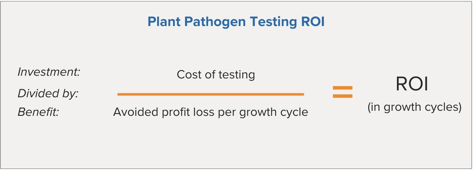 You can do the same thing to estimate how long it might take for your investment in plant pathogen testing to pay off. We will express ROI in the number of growth cycles.