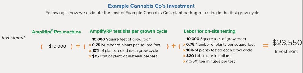 Following is how we estimate Example Cannabis Co’s year-one investment in plant pathogen testing: