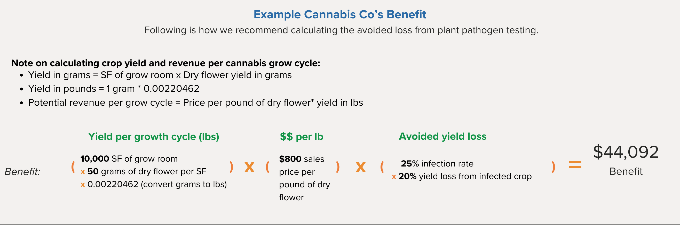 Example Cannabis Co’s Benefit: The avoided lost profits from plant pathogen testing and mitigation efforts
